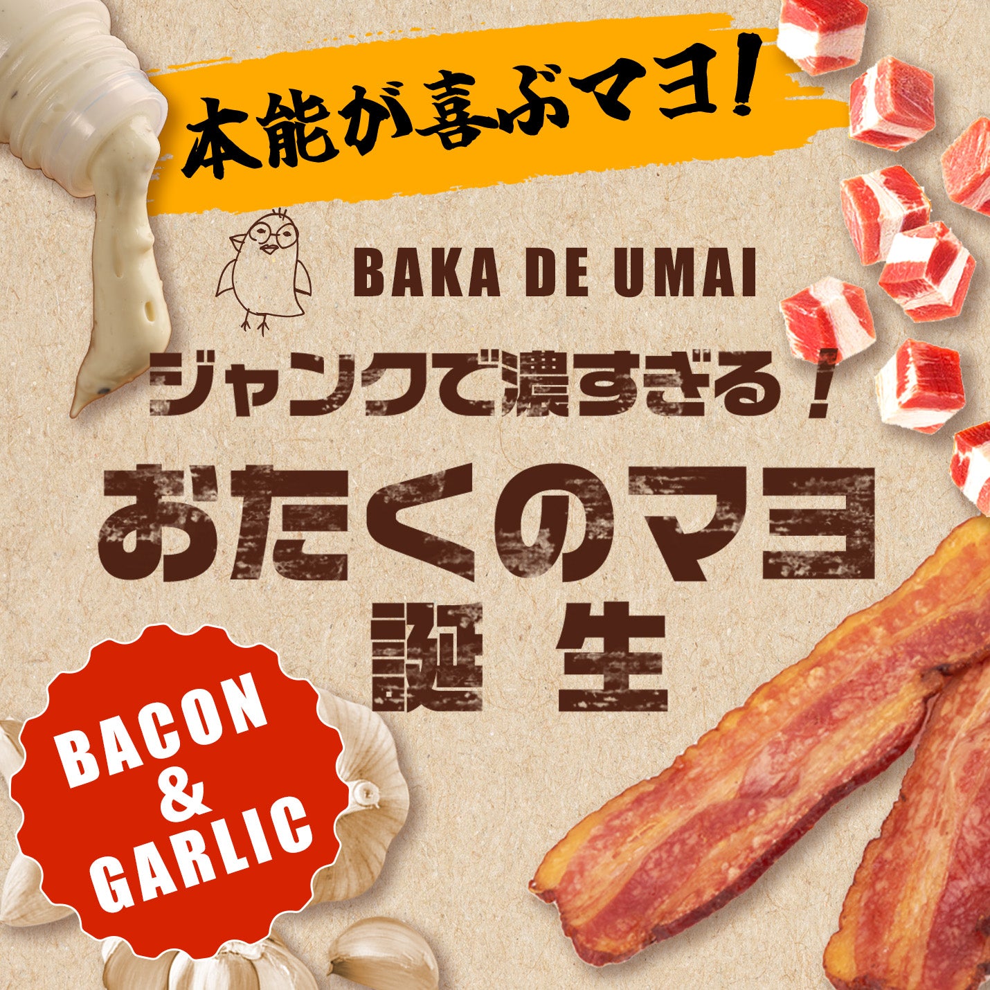 ベーコン・ガーリック・ブラックペッパーを使用した、1度食べたらクセになるジャンクなマヨです。